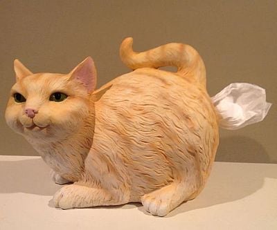 Si tienes un catarrazo, el señor Jingles el gato estará encantado de ayudarte a limpiarte la nariz. En vez de dejar que tu caja de pañuelos cuelgue suelta, deja que tus pañuelos cuelguen del culo de este gato. Es súper gracioso.