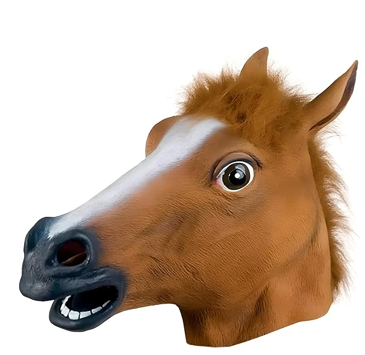 Te lo pasarás en grande cuando vayas a tu próxima fiesta con esta máscara de caballo de látex sobre la cabeza. No hay duda de que serás la persona más rara allí y la gente no podrá dejar de hablar de ti. La máscara cubre toda la cabeza y el cuello para, ya sabes, autenticidad.