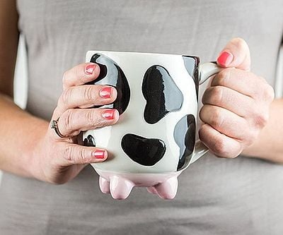 Empieza a moverte por la mañana con una taza que es adorable. Esta taza de cerámica artesanal tiene una capacidad grande y se apoya en una base de ubres rosas y carnosas. Los amantes de las vacas no podrán dejarse pasar esta.