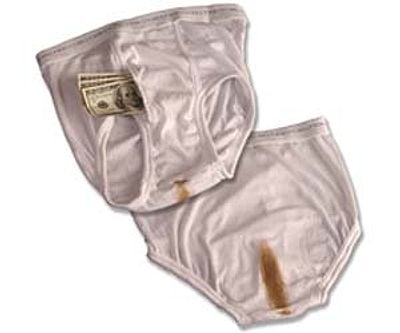 Guarda tu fortuna en un lugar que absolutamente nadie, ni un alma, pensaría o siquiera se atrevería a mirar. Estos calzoncillos están equipados con bolsillos con velcro y, eh, una cosa más, una gran mancha de caca justo en el centro, que mantendrá a la gente alejada de tus riquezas.