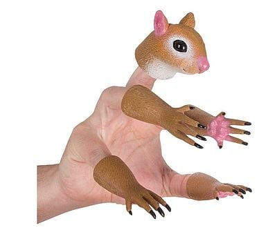 Haz que tu próxima visita al parque confunda a muerte con los animales que encuentres deslizando tus dedos entre las extremidades de la ardilla Handi. Mueve los dedos y haz que la ardilla de látex hable con los animales, o mejor aún, hable tú mismo. Eso no es nada raro.