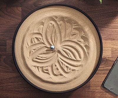 Deja el estrés a un lado relajándote con este cuenco automático de arena zen para jardín. El pequeño mármol metálico se mueve constantemente por la arena para crear más de ochenta diseños hipnotizantes y simétricos que te ayudarán a encontrar paz interior y a desestresarte.