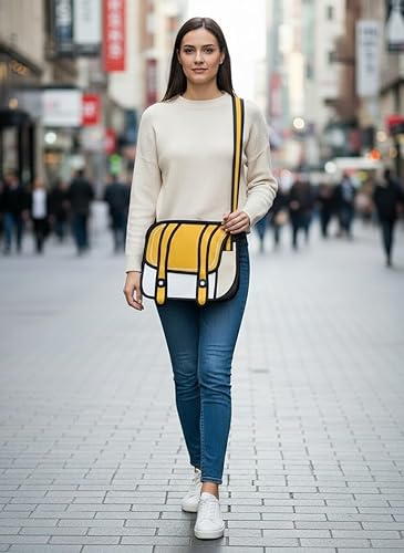 Anima tu apariencia sencilla animando tu armario con estas coloridas bolsas de dibujos animados. Estas bolsas únicas y vibrantes cuentan con un diseño llamativo que crea la ilusión de que llevas tus cosas dentro de un enorme bolso de dibujos animados en la vida real
