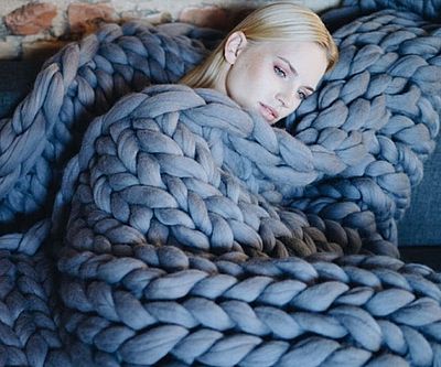 Mantente bien calentita en una fría noche de invierno acurrucándote con esta manta de punto gruesa. Cada manta está hecha a mano con lana merino 100% y está disponible en tamaños que van desde 15 x 23 pulgadas hasta 70 x 78 pulgadas.