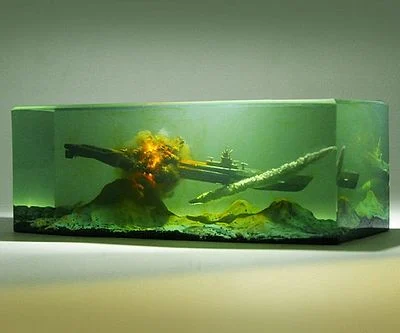 Aporta un factor impresionante a tu escritorio de trabajo aburrido en forma de este diorama explosivo de escritorio submarino. Este magnífico diorama mide 3″ x 3″ x 8″ y será una excelente incorporación al escritorio para cualquiera que aprecie la guerra naval.