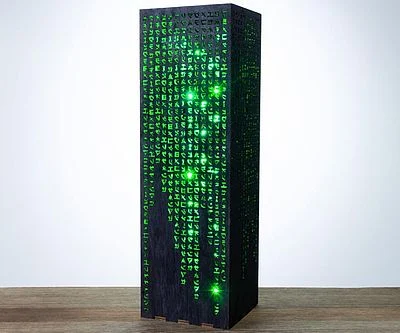 Dale a tu espacio personal un brillo futurista indiscutiblemente genial encendiendo esta lámpara de código Matrix. Este accesorio friki que llama la atención para dormitorios y salas de juegos viene con un práctico control que te permite cambiar su color sin esfuerzo.