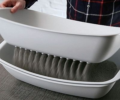 Deja de sacar los regalos desagradables de caca de gato de una vez por todas usando la caja de arena Luuup. El brillante diseño utiliza tres bandejas idénticas que se apilan una sobre otra para crear un ciclo de tamizado permanente que facilita la limpieza.